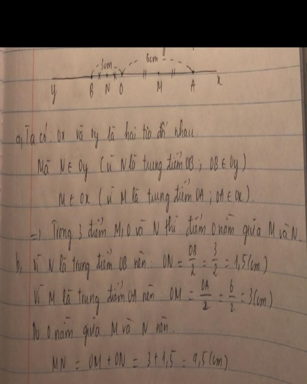 Vậy MN =4,5 cm