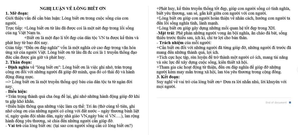 NGHỊ LUẬN VỀ LÒNG BIẾT ƠN