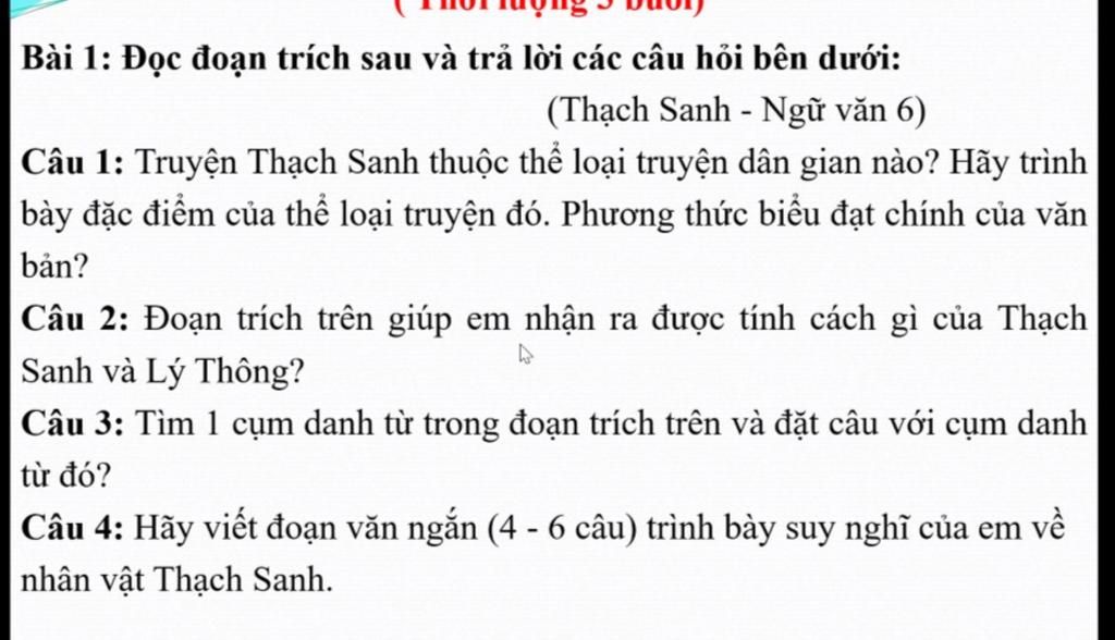- Truyện Thạch Sanh thuộc thể loại truyện cổ tích.