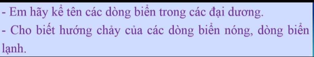 ≡ Em hãy kể tên các dòng biển trong các đại dương.