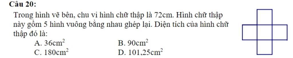 $\text{Diện tích một hình vuông trong hình chữ thập là:}$