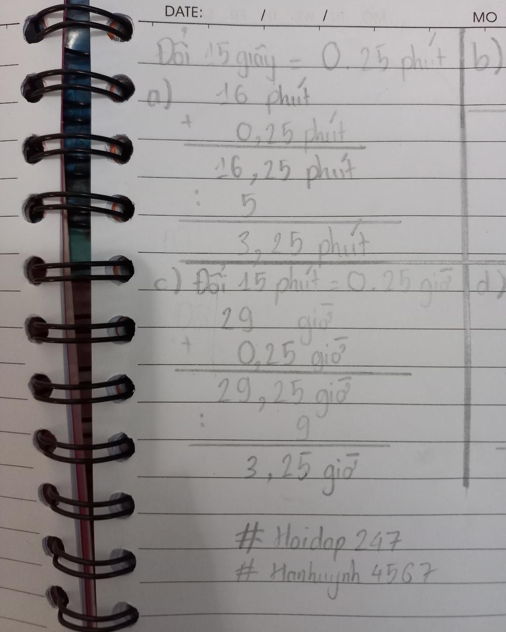 c,29 giờ 15 phút : 9=3 giờ 15 phút