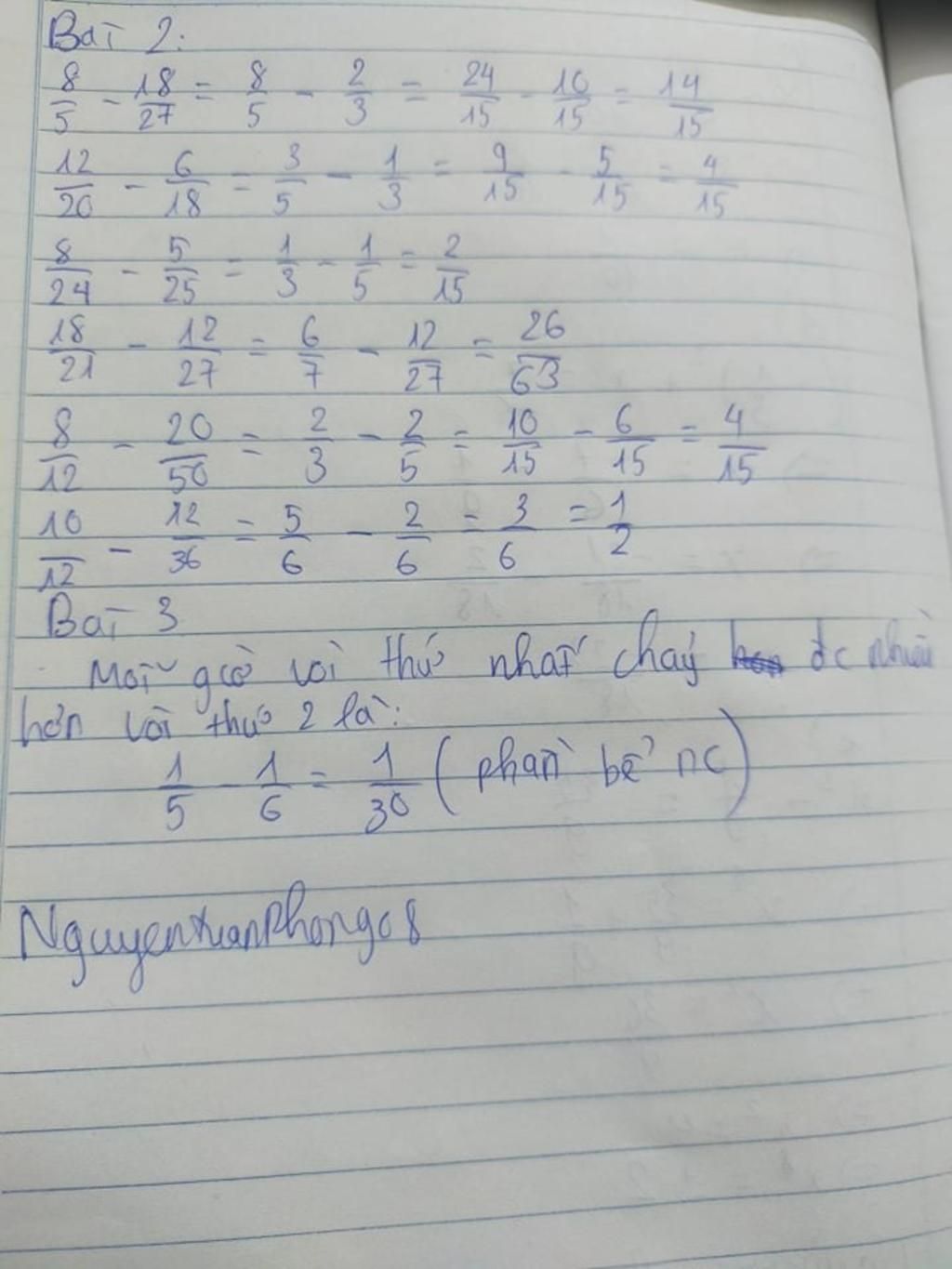 `1/5 - 1/6 = 1/30` ( bể nước )