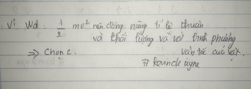 $→$ Động năng tỉ lệ thuận với bình phương vận tốc của vật