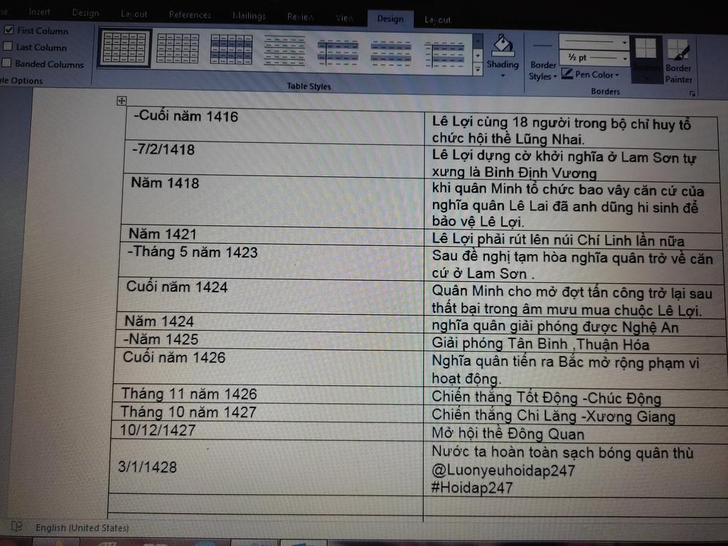 Lập niên biểu cuộc khởi nghĩa Lam Sơn ( Từ cuối năm 1416 - cuối năm 1426 )