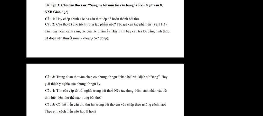 `-` Câu thơ đã cho trích trong tác phẩm: "Tức cảnh Pác Bó"