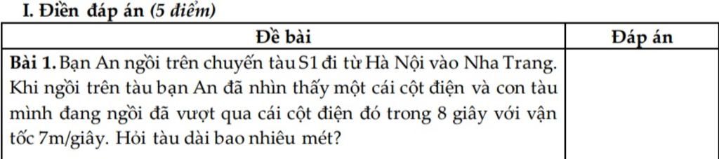tốc 7m/giây. Hỏi tàu dài bao nhiều mét?