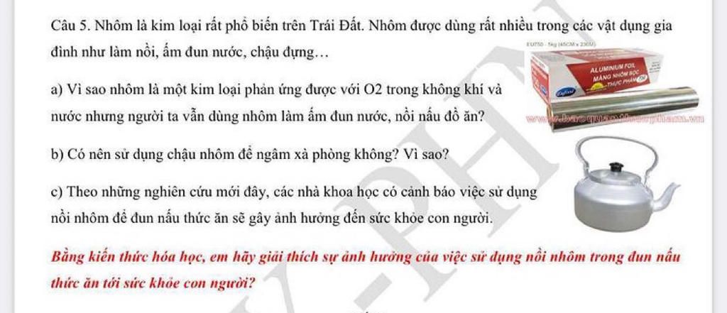 + Nhôm dễ bị ăn mòn nên khi nồi nhôm chứa thức ăn có chất kiềm, chất chua => dễ tạo nên phản ứng sinh ra vi chất nhôm độc hại cho con người.