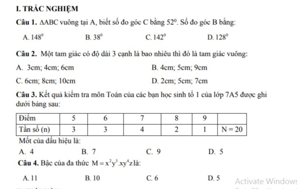 Câu 3: A ( Lấy Điểm x Tần số rồi cộng với nhau = 86
