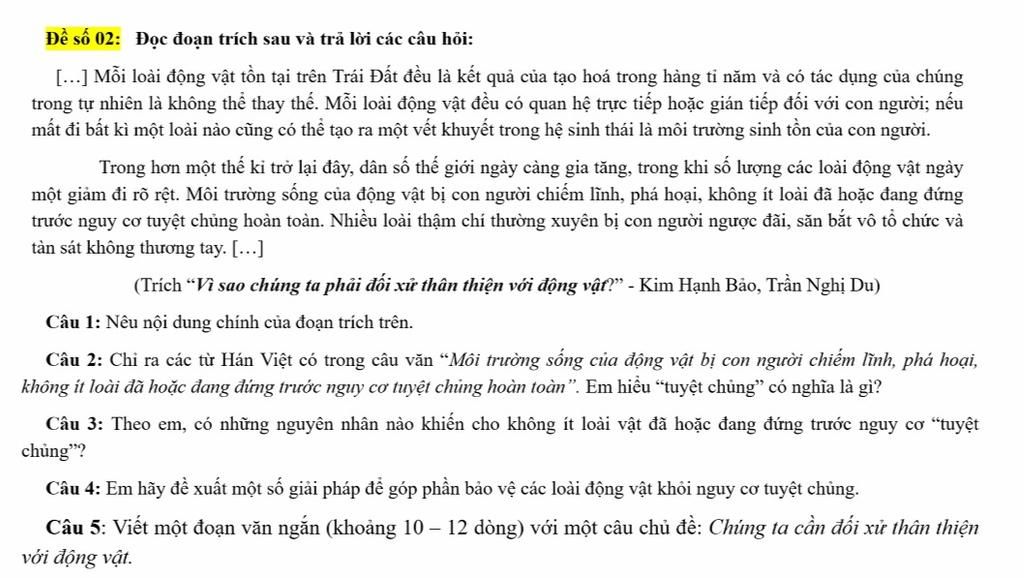 Câu 4: Em hãy đề xuất một số giải pháp để góp phần bảo vệ các loài động vật khỏi nguy cơ tuyệt chủng.