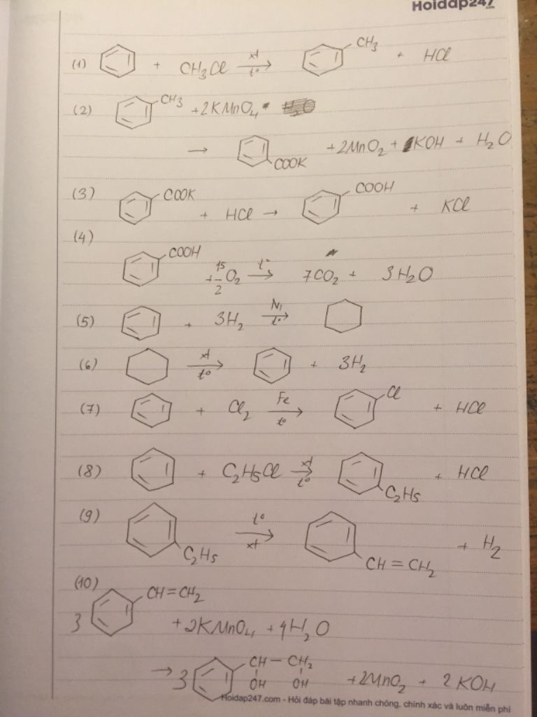 C6H6 (8) C6H5C2H5(9)vinyl benzen (10)etan-1,2- điol benzen.