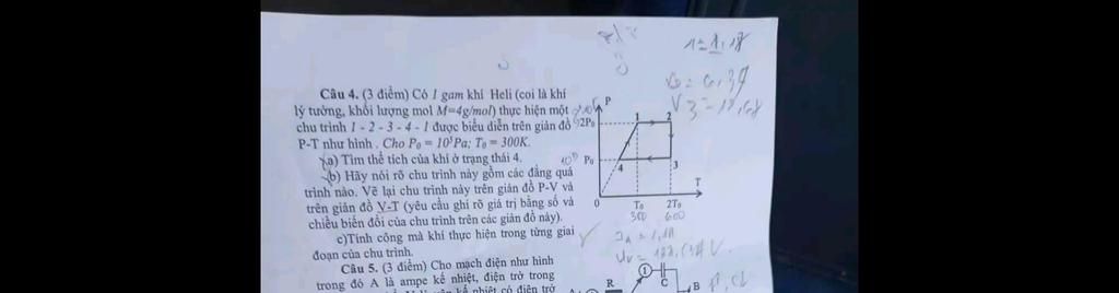 Câu 4. (3 điểm) Có I gam khi Heli (coi là khí