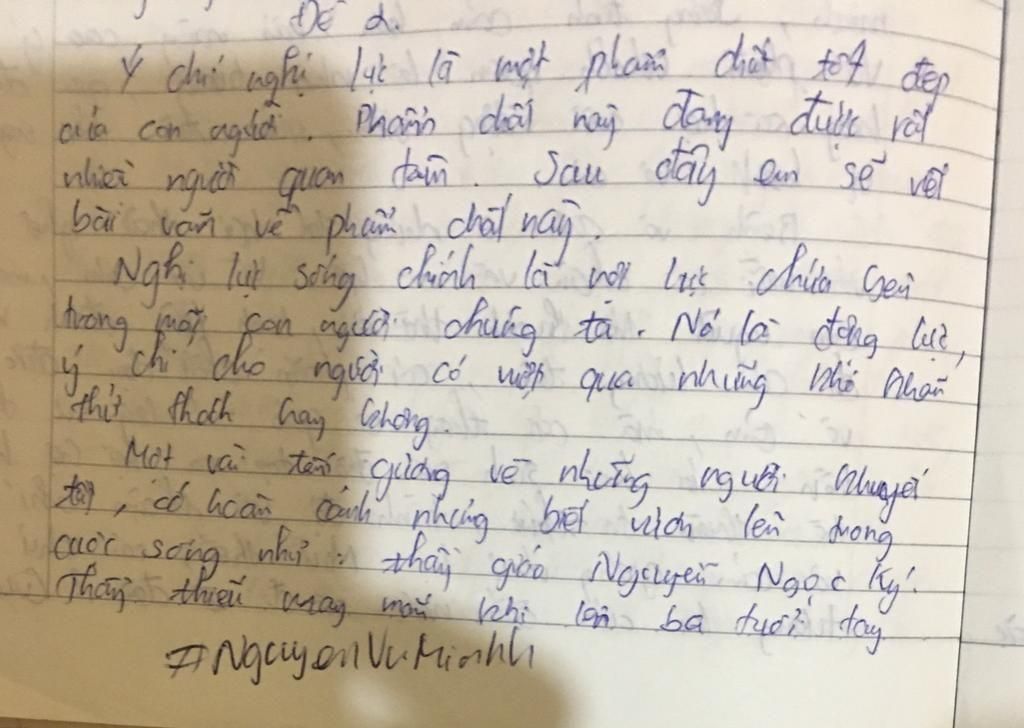 Một trong những đức tính quý báu của con người mà ai cũng cần rèn luyện chính là ý chí, nghị lực. Vậy ý chí,nghị lực là gì? Ý chí.nghị lực sống của con người là sự nhận nazi,cố gắng,quyết tâm vươn lên, theo đuổi mục tiêu của mình cho dù gặp nhiều khó khăn, trở ngại và vấp ngã.Mọi việc trên đời này không phải dễ dàng mà thành công được, để đạt được thành công, chúng ta phải cần có ý chí theo đuổi mục tiêu. Ông bà ta có câu “có chí thì nên” cũng là vì lẽ đó. Có thể nói, ý chí, nghị lực chính là một trong những yếu tố quan trọng nhất quyết định đến thành công của con người.Người có nghị lực luôn có thể chuyển rủi thành may, chuyển họa thành phúc, không khuất phục số phận và đổ lỗi thất bại do số phận.Những người như vậy luôn luôn biết khắc phục hoàn cảnh khó khăn bằng cách tự lao động, mưu sinh, vừa học vừa làm, tự mở cho mình con đường đến tương lai tốt đẹp.Có thể thấy điển hình của những con người có ý chí nghị lực chính là những người bị bệnh tật hiểm nghèo hoặc bị khiếm khuyết trên thân thể.Họ không hề ngồi đó chờ đợi mà thay vào họ cố gắng tự chăm sóc cho bản thân, cố gắng tập luyện, làm những việc có ích.Những người có ý chí,nghị lực thường có niềm tin vào bản thân, tinh thần lạc quan để theo đuổi đến cùng mục đích, lí tưởng sống.Họ biết thay đổi được hoàn cảnh số phận, cuộc sống có ích, có ý nghĩa hơn và rồi học trở thành những tấm gương về ý chí, nghị lực vượt lên số phận như thầy Nguyễn Ngọc Kí,CHủ tịch Hồ Chí Minh,nhà bác học Thomas Edison,...Người có ý chí nghị lực sẽ luôn được mọi người ngưỡng mộ, cảm phục, đồng thời tạo được lòng tin ở người khác.Thế nhưng một bộ phận của xã hội là không cố gắng,chưa làm đã thấy khó khăn và nản chí thì xã hội này sẽ ra sao?Nếu trong xã hội con người ai khi gặp khó khăn cũng bỏ cuộc thì xã hội sẽ không phát triển được , con người sẽ rơi vào bế tắc và họ xứng đáng bị xã hội lên án,phê phán.Như vậy, ý chí và nghị lực là thước đo giá trị con người, mỗi chúng ta ai cũng cố gắng rèn luyện để có ý chí và nghị lực sống, không nên sống hèn nhát và yếu đuối. Muốn như vậy thì từ vậy giờ hãy rèn luyện để bản thân vươn tới những ước mơ thành công.