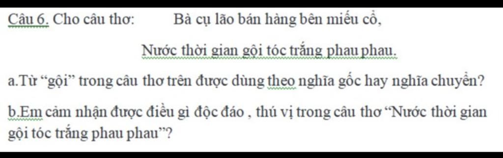 b. điều thú vị là : nước thời gian ko có thực, nhưng thời gian cứ trôi đi, ta ngày càng già đi, xối xuống tóc ta như nước, nước này là quá khứ nên sẽ làm tóc ta bạc phơ