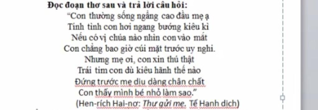 Qua đoạn thơ trên, em hiểu điều tâm sự của người con muốn nói với mẹ những gì?