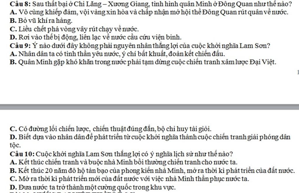 `→` Quân Minh gặp khó khăn trong nước phải tạm dừng cuộc chiến tranh xâm lược Đại Việt không phải nguyên nhân thắng lợi của cuộc khởi nghĩa Lam Sơn.