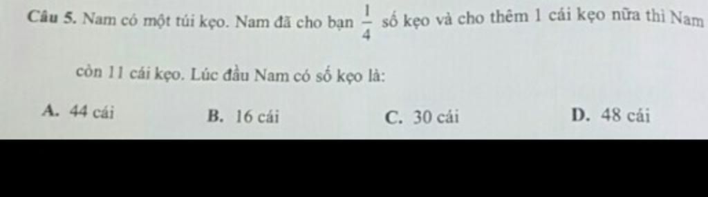 Sau khi cho bạn `1/4` số kẹo thì Nam còn: