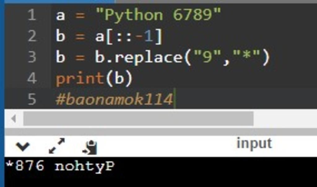 $\text{dòng thứ 3 b=b.replace("9","*") để thay số 9 thành dấu *}$
