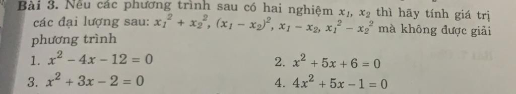 Bài 3. Nếu các phương trình sau có hai nghiệm x1, x2 thì hãy tính giá trị