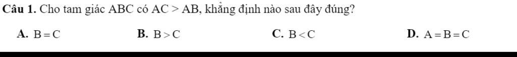 cạnh ac lớn hơn cạnh ab góc đối diện với ac là b nên b to nhất