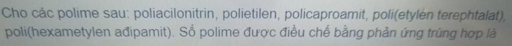 Các $\text{polime}$ trùng hợp : $\text{poliacrilonitrin , polietilen , policaproamit .}$