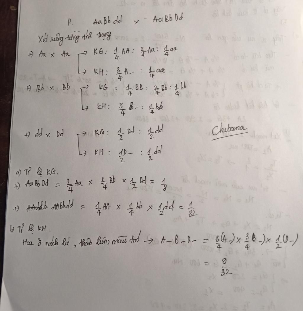 $\frac{1}{4}$AA × $\frac{1}{4}$bb × $\frac{1}{2}$dd = $\frac{1}{32}$