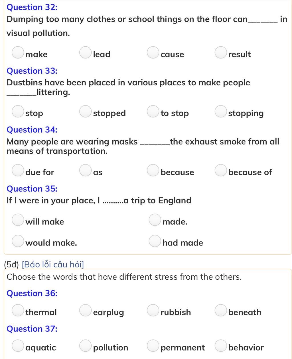 3 từ "thermal", "rubbish", "earplug" đều có trọng âm rơi vào âm thứ nhất, riêng "beneath" rơi vào âm thứ hai
