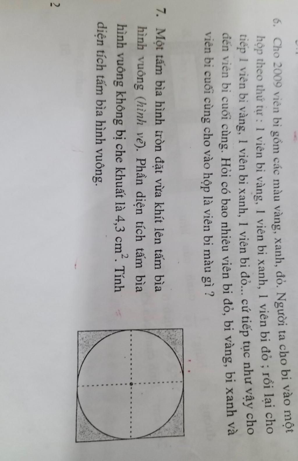 $2009:3=669$ (cặp) và dư 2 viên bi.