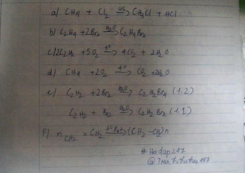 `CH_4 + 2O_2`$\xrightarrow{t°}$`CO_2 + 2H_2O`