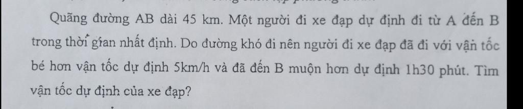 Gọi vận tốc dự định của xe đạp là $x\,\,\,(x>5)$
