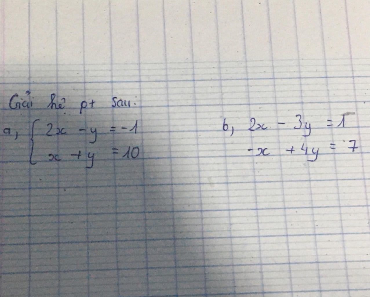 a) Hệ phương trình có nghiệm duy nhất $(x;y)=(3;7)$
