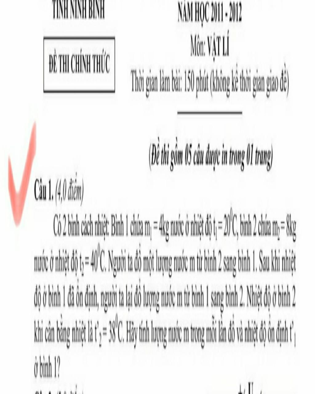 Khi đổ lượng nước m vào bình 1 ta có pt: