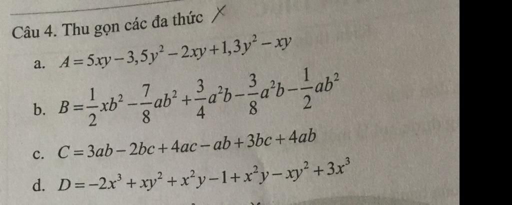 `b) B=1/2xb^2-7/ab^2+3/4a^2b-3/8a^2b-1/2ab^2`