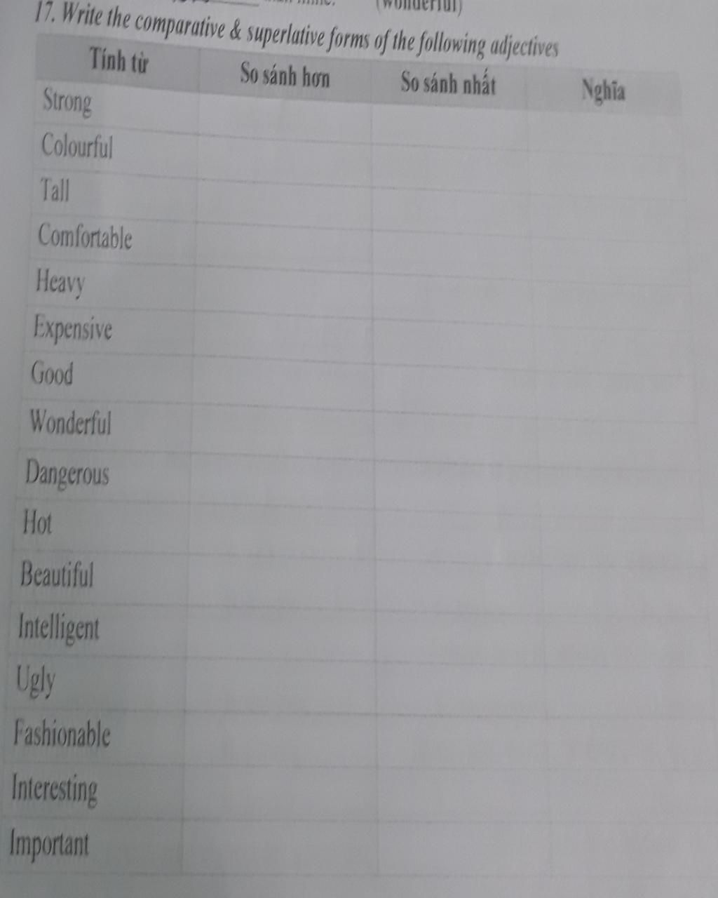 wonderful `->` more wonderful `->` most wonderful: tuyệt vời