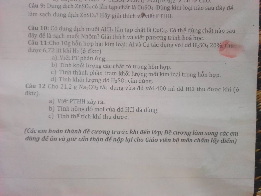 Nếu dùng dư Zn,CU tạo thành không tan được tách ra khỏi dung dịch và thu được dung dịch ZnSO4 tinh khiết
