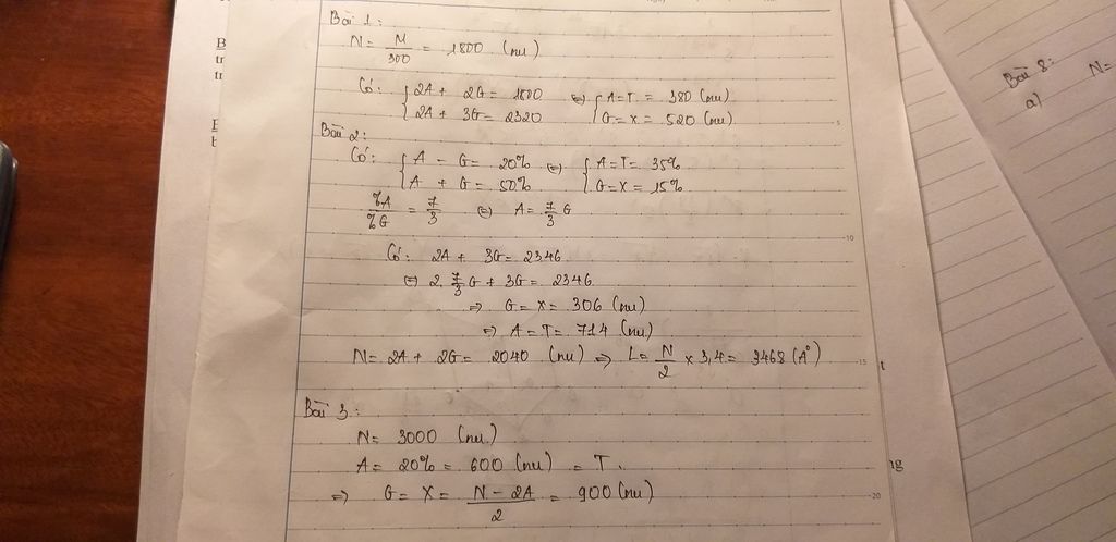 Bài 1: Số nucleotit của gen: 540000 : 300 = 1800 nu