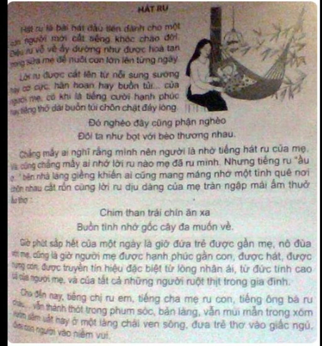 Bài viết dưới giúp em hiểu thế nào là hát ru ? Viết một câu để trả lời câu hỏi.