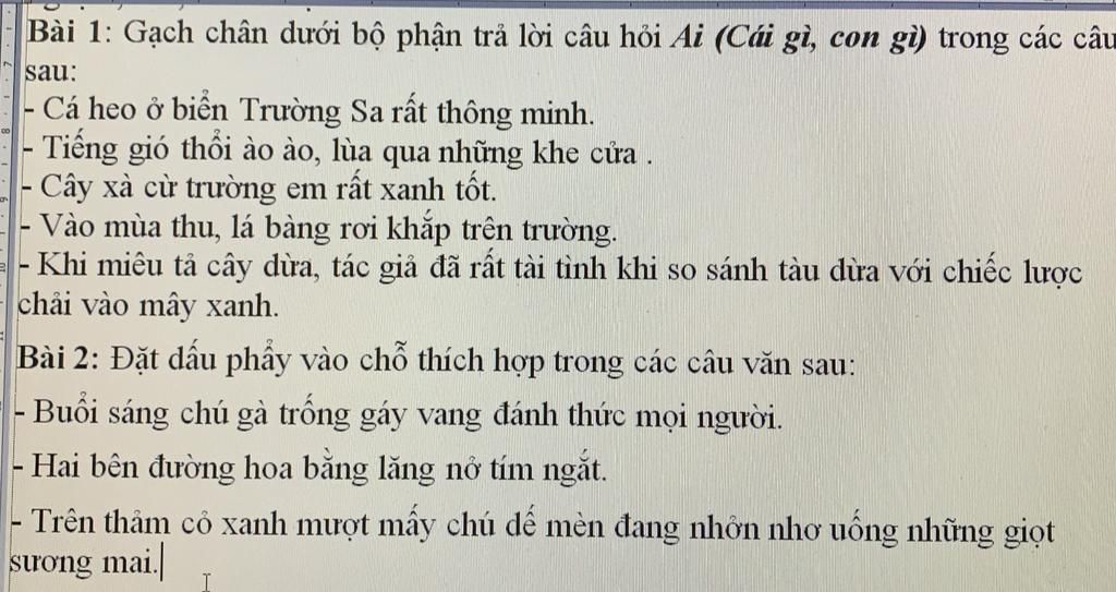 Các từ trả lời câu hỏi Ai (Cái gì, con gì) lần lượt là :