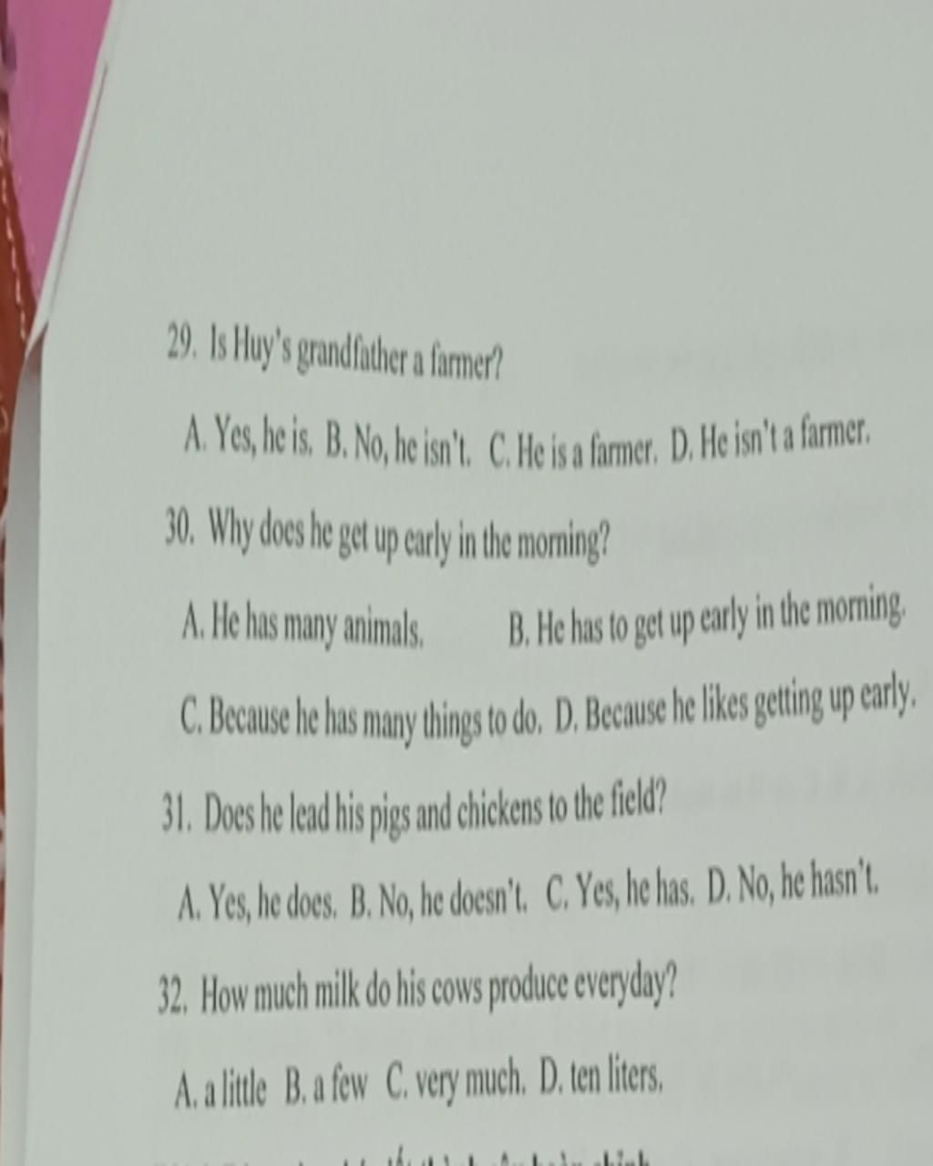 Câu hỏi: Is Huy's grandfather a famer