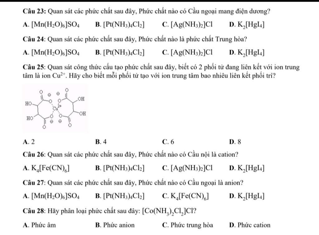 Cầu ngoại mang điện dương nên phức thuộc loại phức anion.