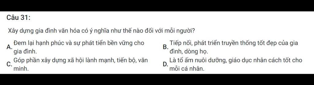 `-` Xây dựng gia đình văn hóa có ý nghĩa góp phần xây dựng xã hội lành mạnh, văn minh và tiến bộ đối với mỗi người dân chúng ta