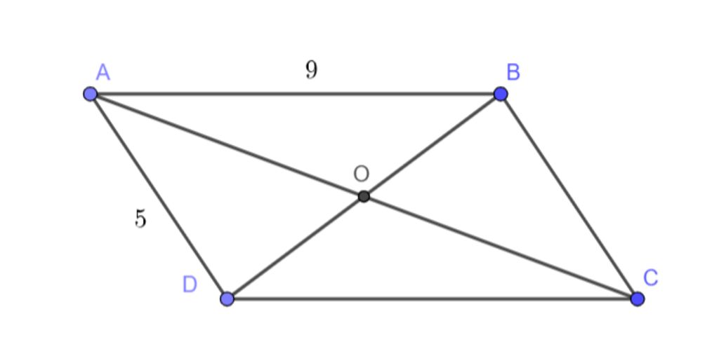 Hình bình hành $ABCD, AB=9, AD=5, O$ là giao hai đường chéo