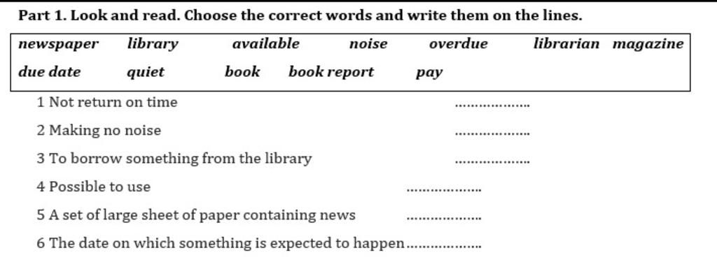 1, Overdue (adj.): khóa hạn: không trả lại đúng giờ
