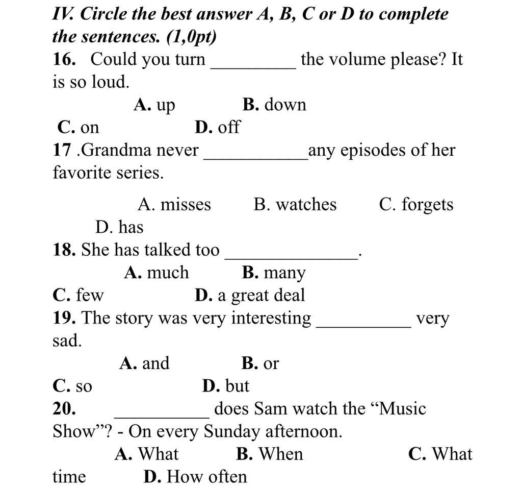 =>Chọn B, down (turn down:giảm xuống)