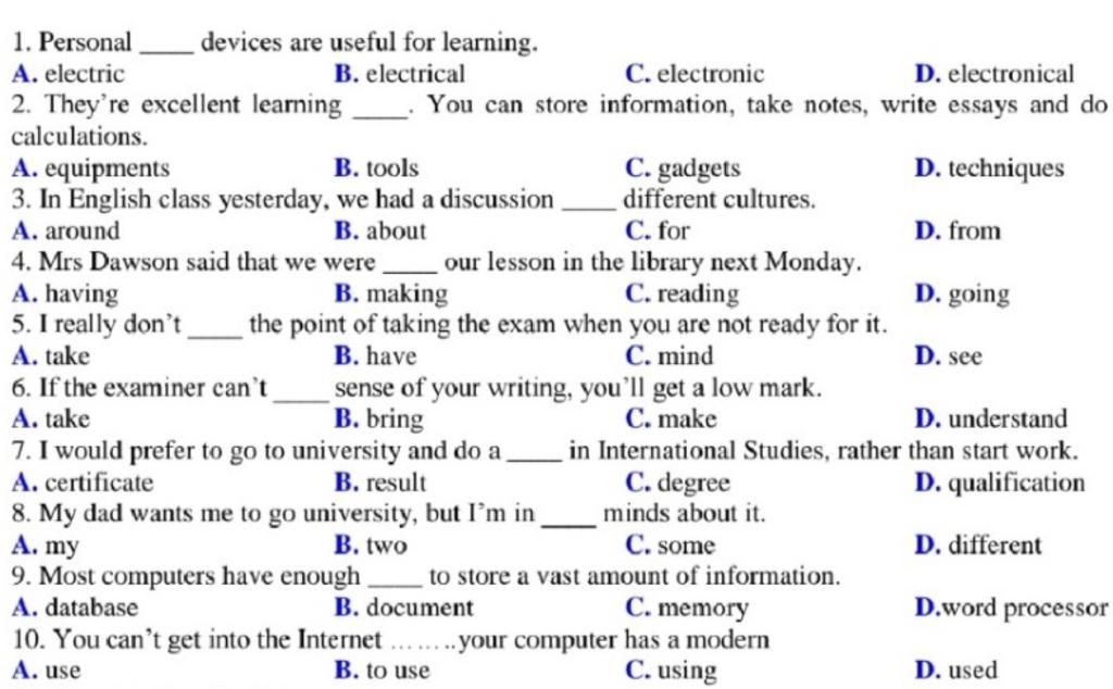 10. Bạn xem lại các đáp án có lỗi không nhé.