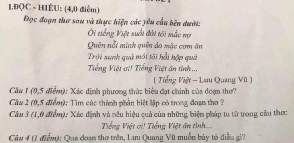 C4. Thể hiện được tình cảm và thái độ của Lưu Quang Vũ đối với tiếng việt. Một sự trân trọng Tiếng Việt đối với mỗi người con đất Việt.