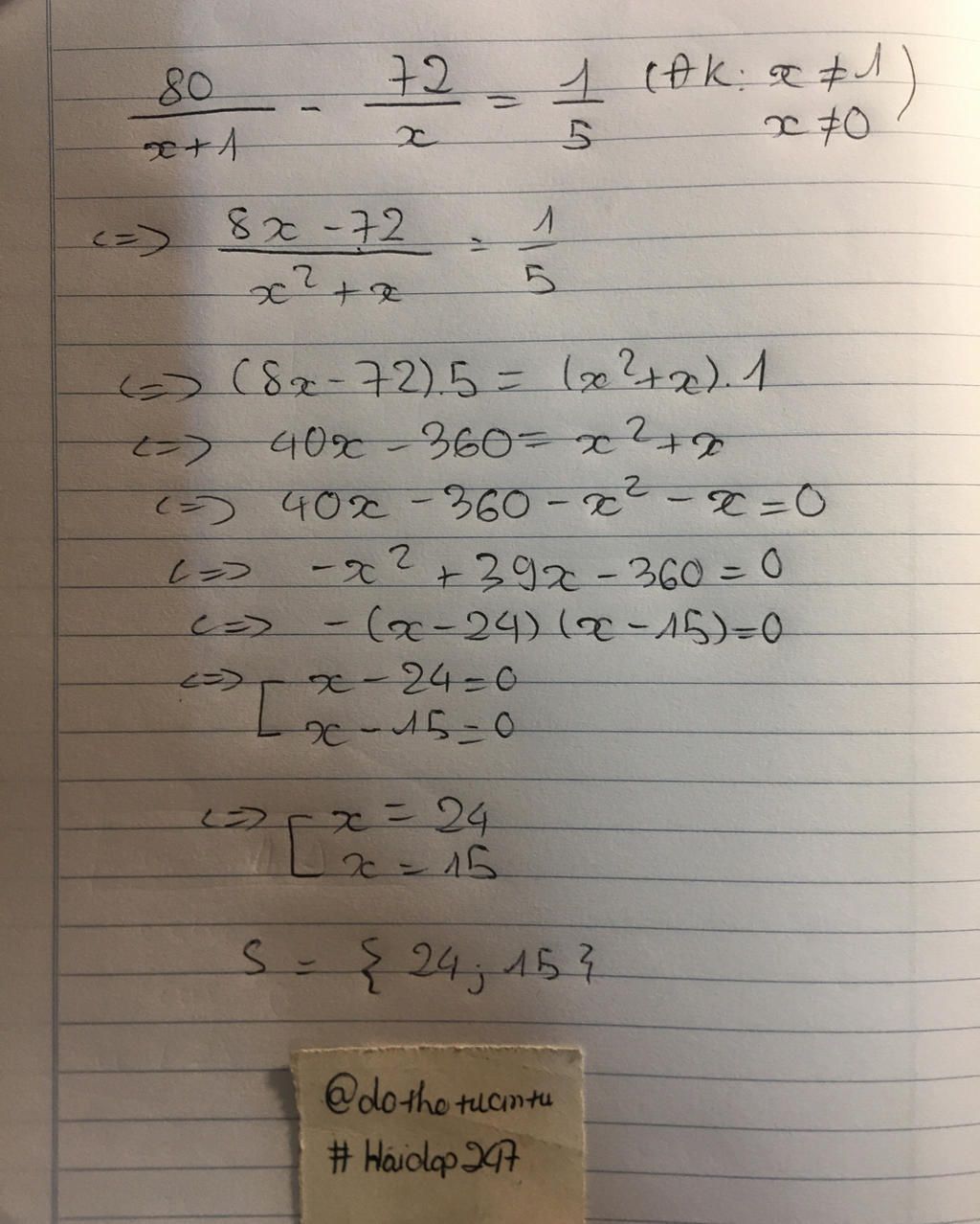 `⇔(80x)/(x(x+1))-(72(x+1))/(x(x+1))=1/5`