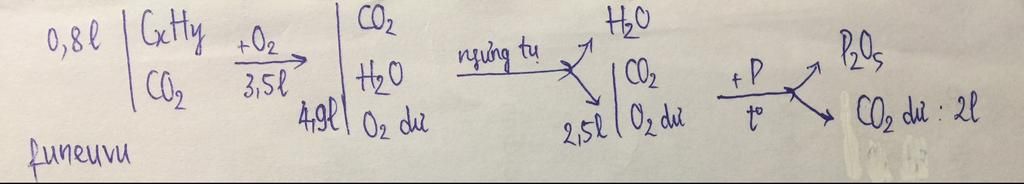 $\xrightarrow{\text{ngưng tụ}}$ `V_{CO_2(sau)} + V_{O_2(dư)} = 2,5 (l)`
