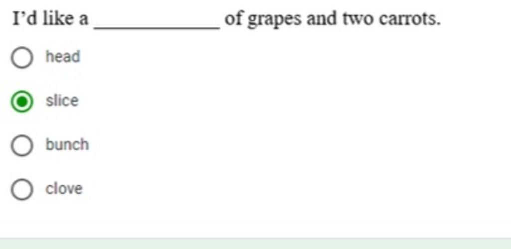 `-` tạm dịch: Tôi muốn có một chùm nho và 2 củ cà rốt.