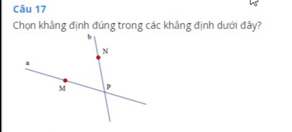 (Nhìn hình ta thấy đường thẳng a và b giao nhau tại P⇒ điểm P thuộc cả hai đường thẳng a và b)